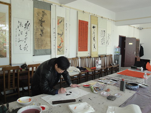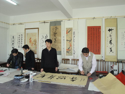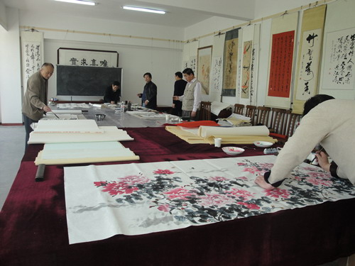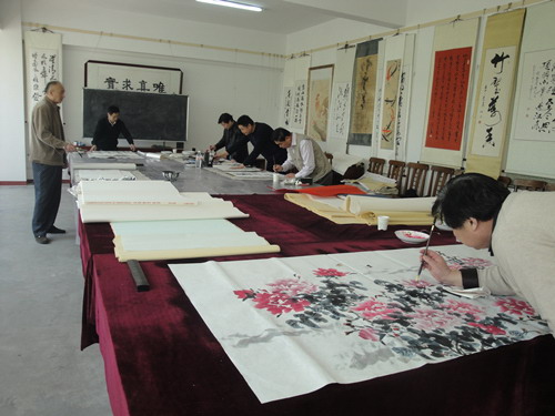 本网讯 4月22日上午,大众书画院在院会议室举办了2015第二次名家笔会,著名画家、炎黄书画院院长王建新,中国美协会员、国家画院副院长郑富勤,中国艺术家 协会山东办事处副秘书长徐鹏,著名毛体书法家、大众书画院执行院长王昭海,市美协副主席郭元金、中国书协会员曾五星等专家泼墨挥毫,或书或画,展示了深厚 的艺术功力。 (楠楠)